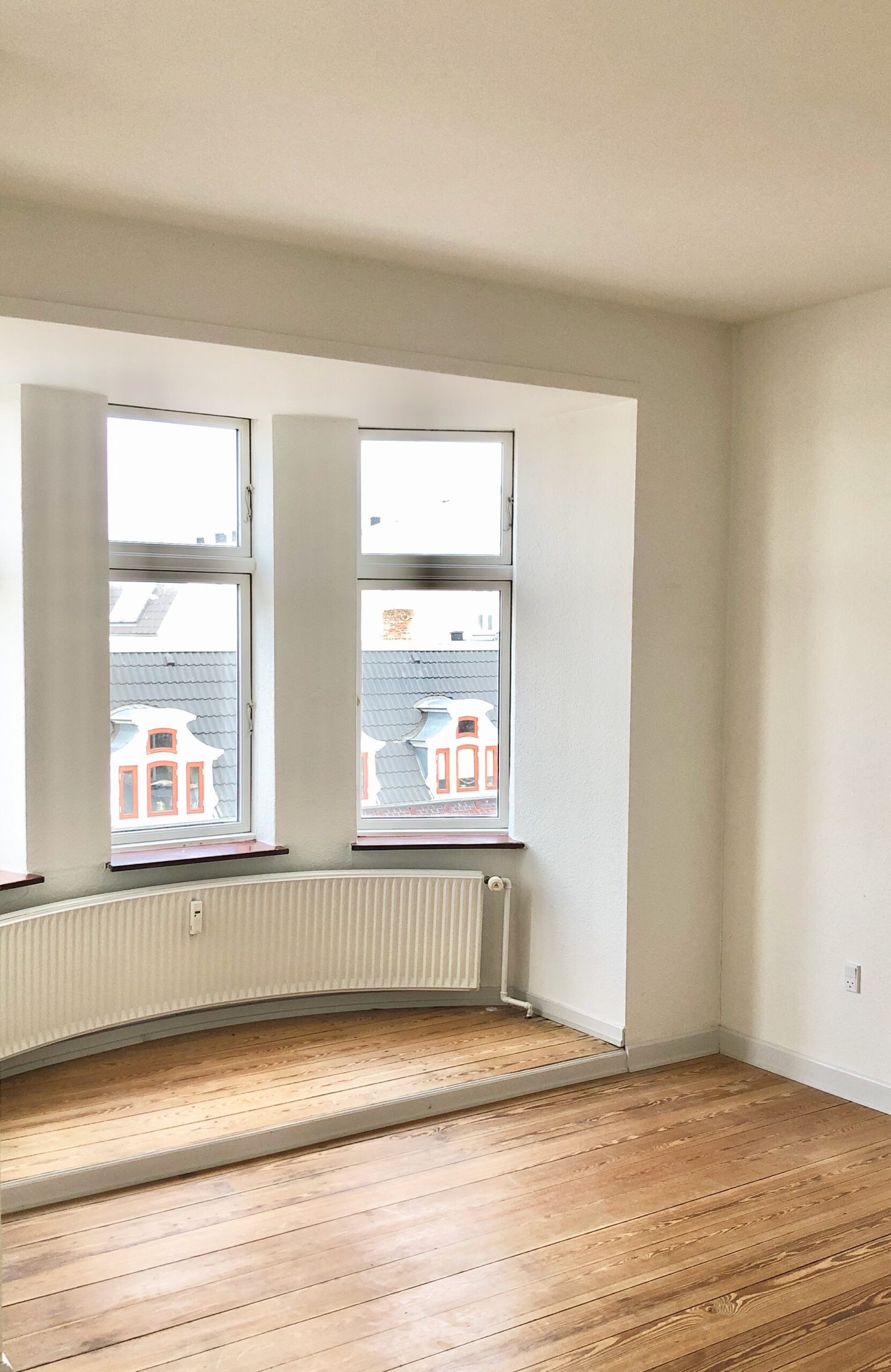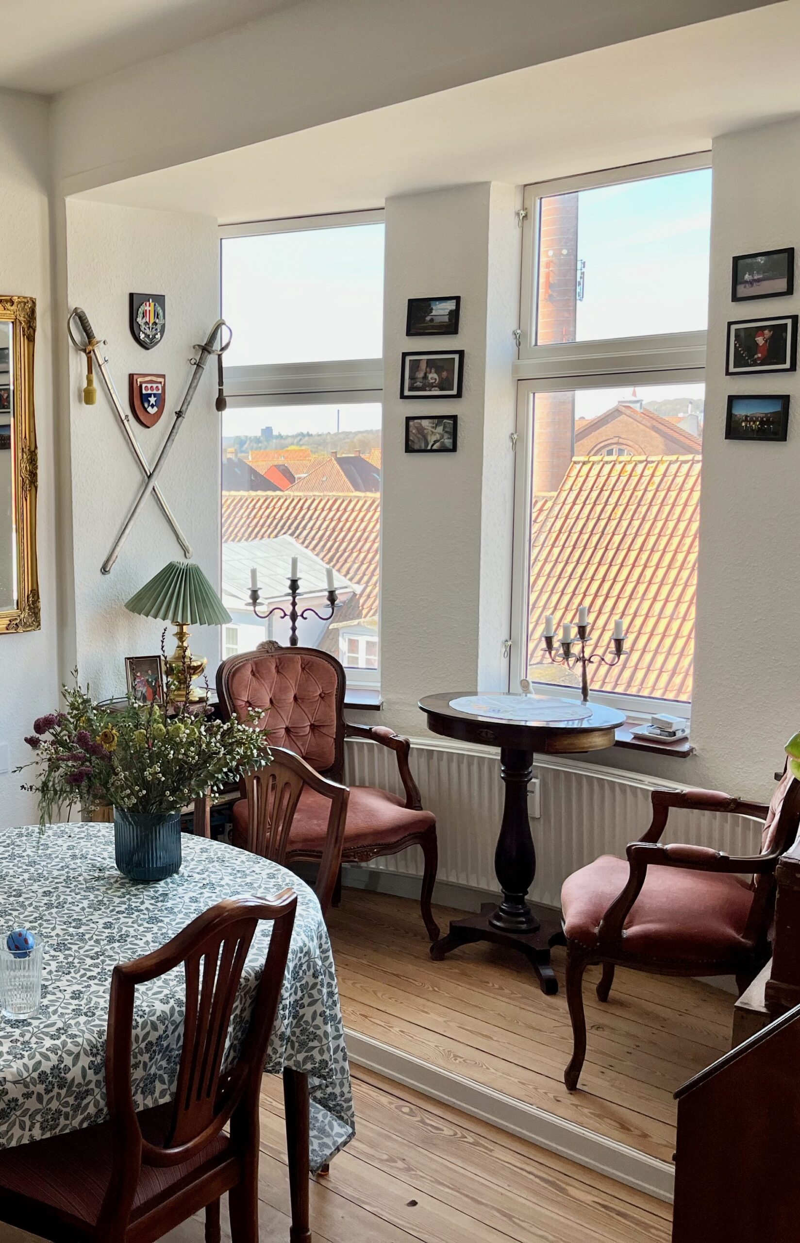 - lysrig stue med både karnap og en lille vestvendt altan