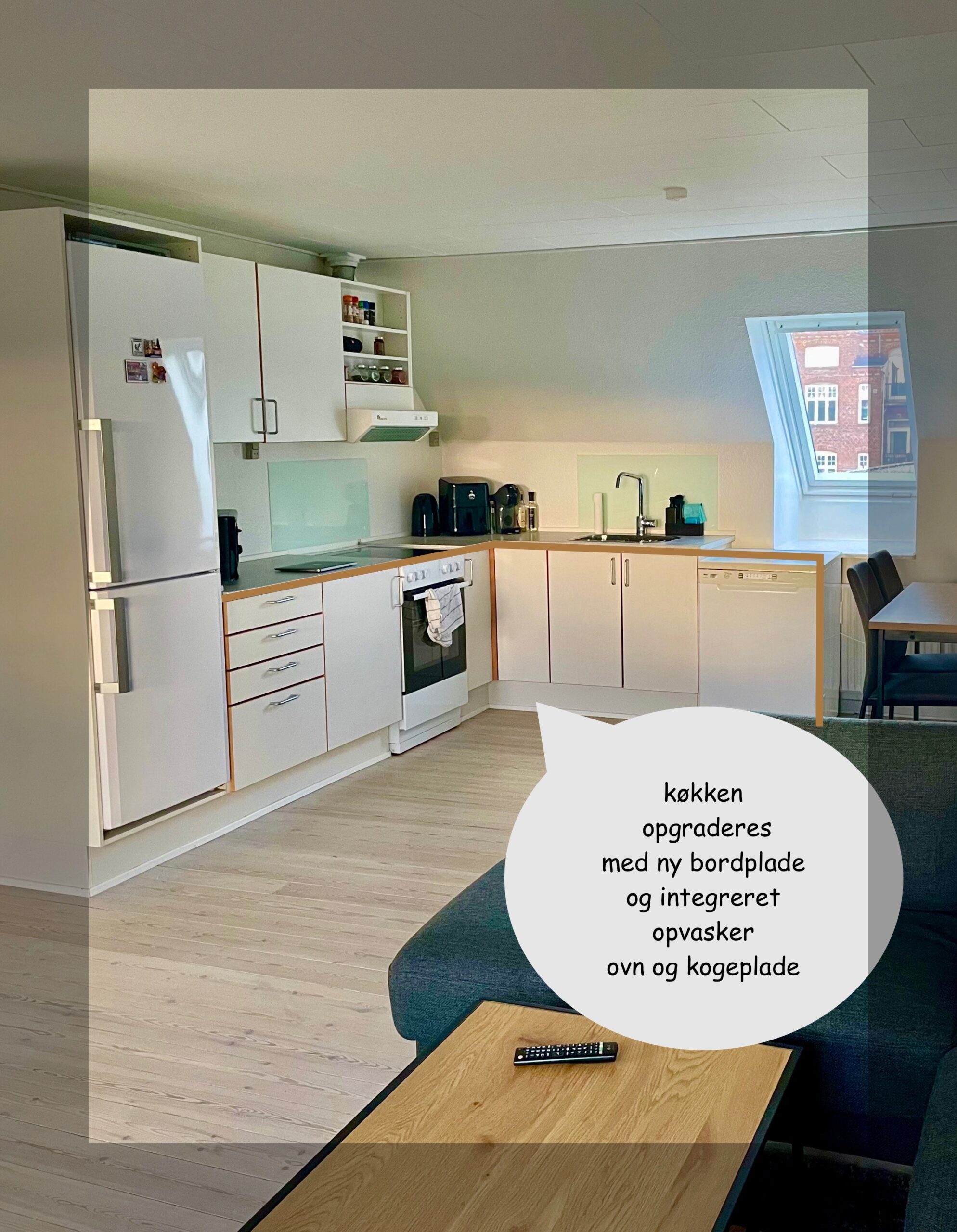 - køkken renoveres med spritny integreret kogeplade/ovn og opvasker